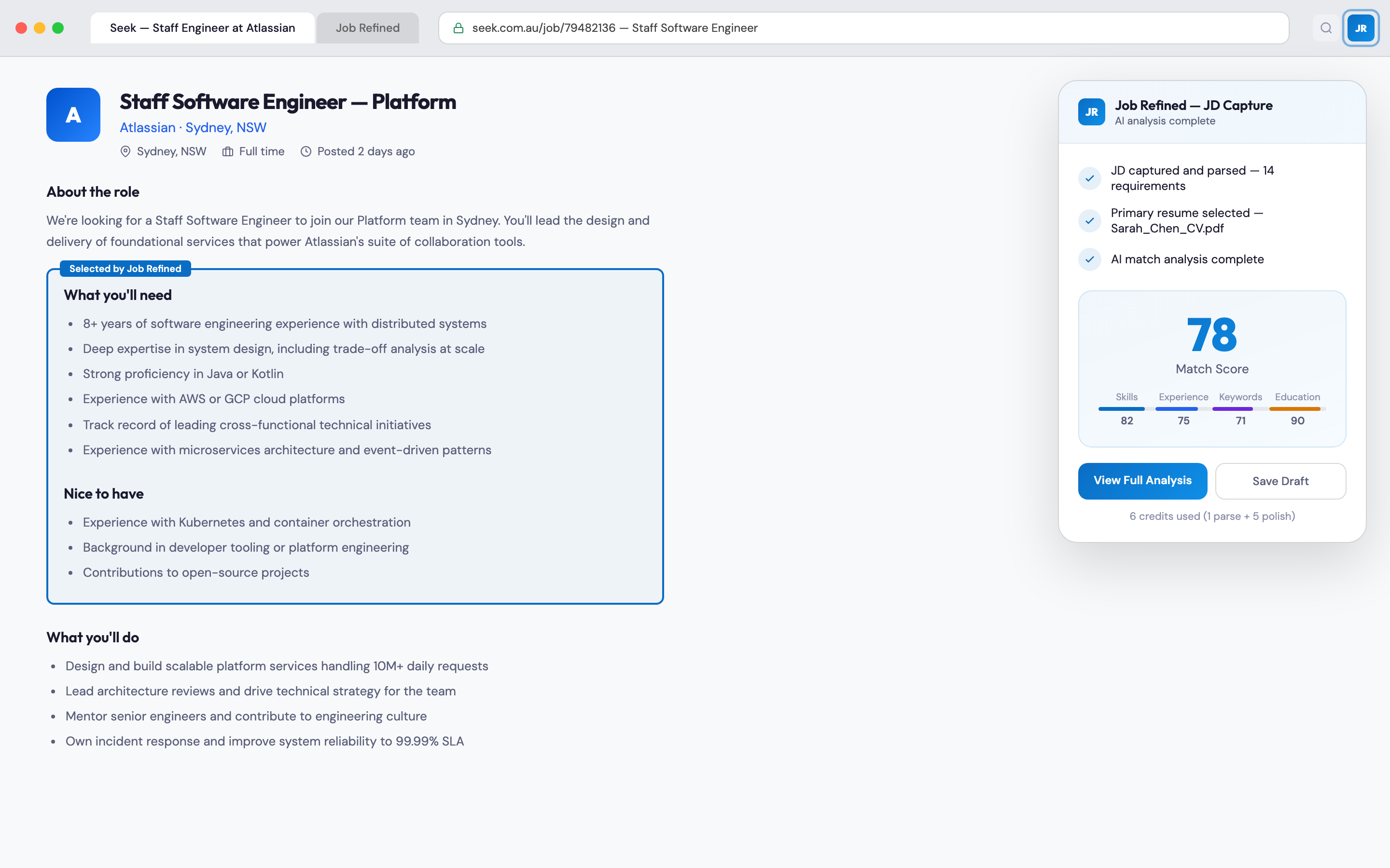 On any job listing page. LinkedIn, Seek, Indeed, or any company career page.